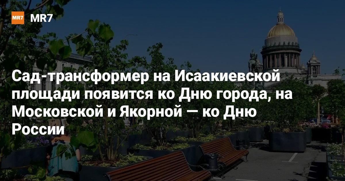 Сад-трансформер на Исаакиевской площади в Петербурге появится ко Дню города (27 мая), рассказал на пресс-конференции ТАСС глава комитета по благоустройству Сергей Петриченко. Ко Дню России (12 июня) откроются сады на Московской и Якорной площадях.