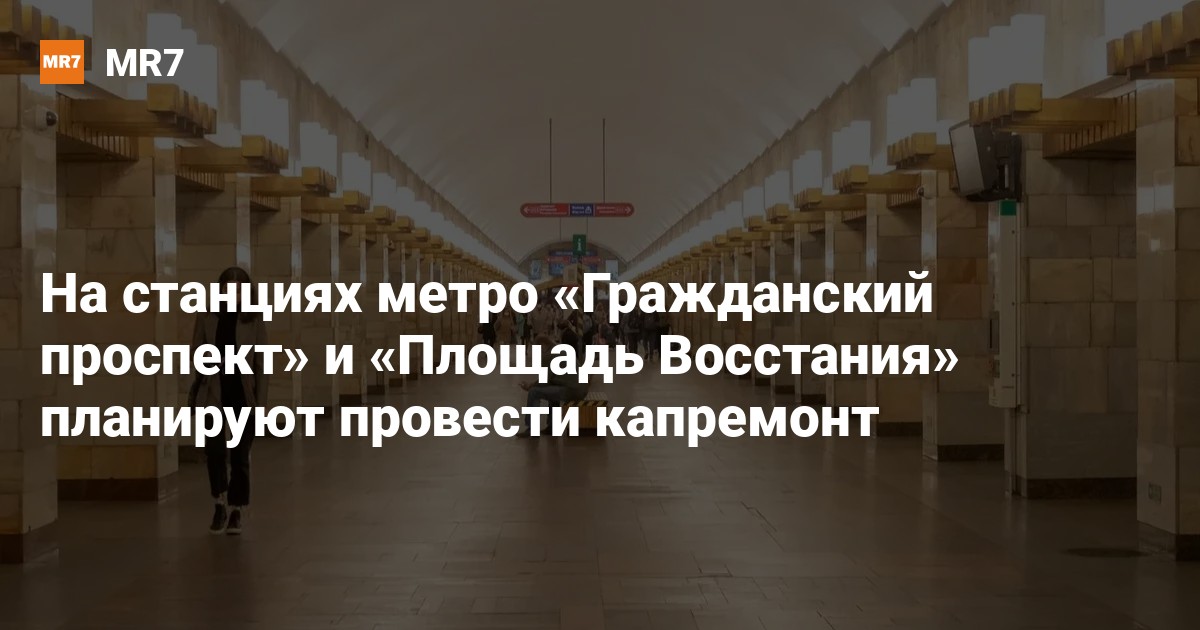 В Петербурге готовится капитальный ремонт двух станций красной ветки метро — «Гражданский проспект» и «Площадь Восстания». В связи с этим петербургский метрополитен проводит мониторинг цен на разработку проектов, сообщила «Фонтанка».