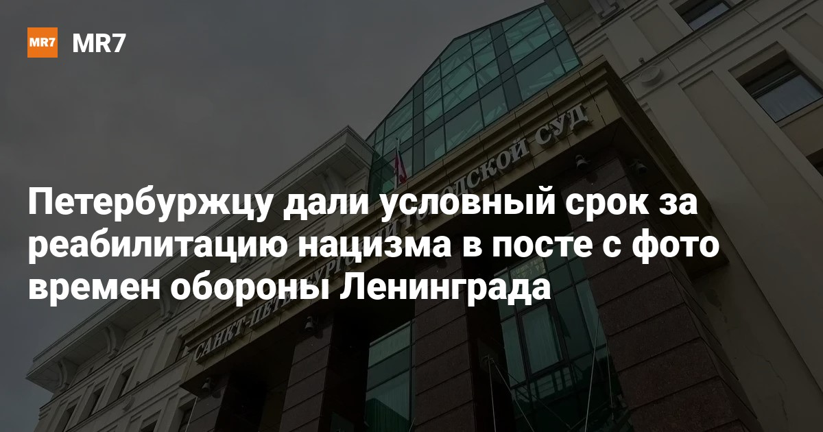 В Петербурге горсуд вынес приговор в отношении местного жителя Андрея Тищенко по делу о реабилитации нацизма после публикации поста в ВК. Об этом 29 апреля рассказали в пресс-службе судов города.