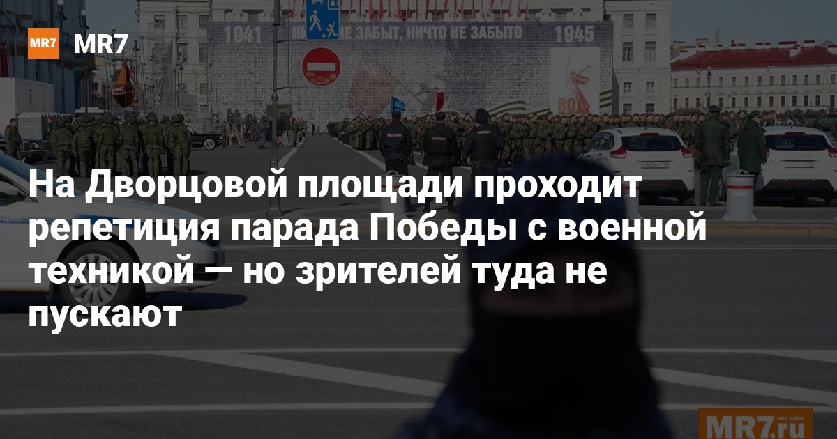 Посмотреть на военные машины и марширующих военных собрались сотни петербуржцев — до начала репетиции они подходили к приехавшим на Дворцовую ретроавтомобилям и фотографировались. Однако с площади их попросили уйти примерно в 13:50. Как передаёт корреспондент MR7, сотрудники полиции оттеснили людей до Александровского сада, закрыли сад Зимнего дворца.