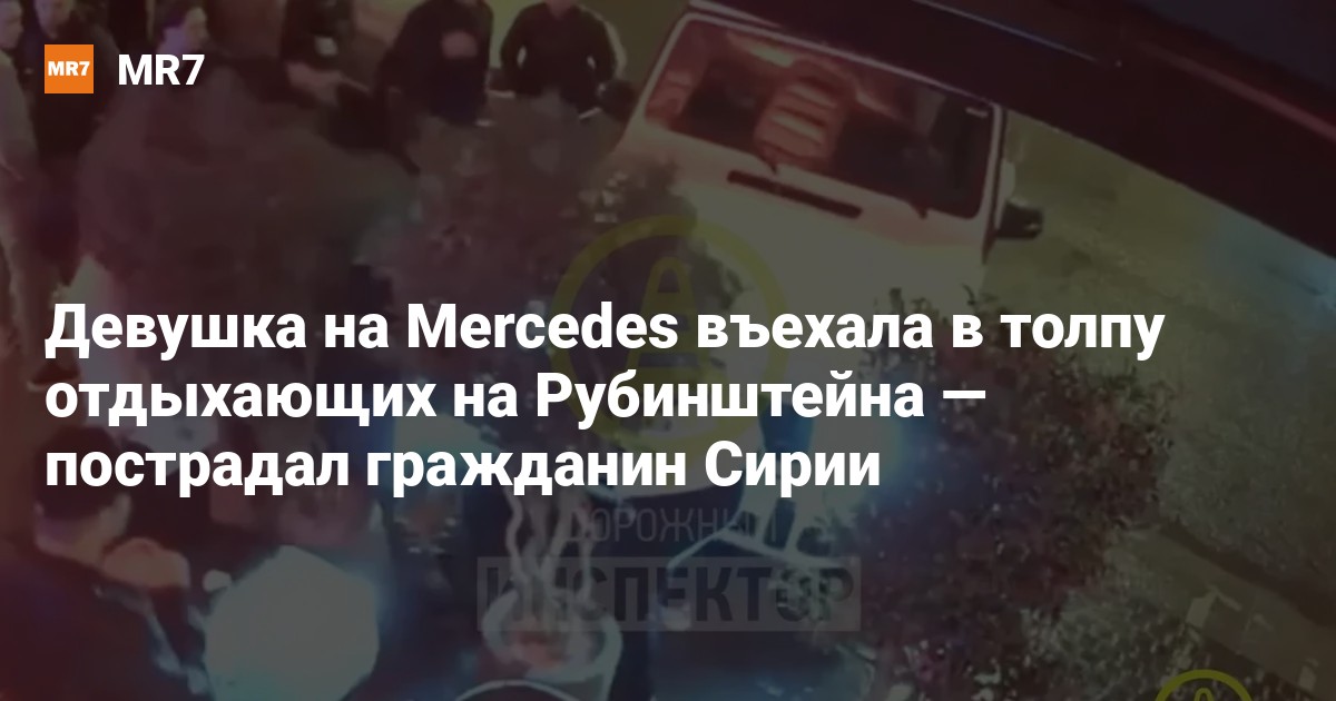 Ночью с 2 на 3 мая девушка на автомобиле Mercedes наехала на людей, которые гуляли по улице Рубинштейна. О происшествии рассказал telegram-канал «Дорожный инспектор».