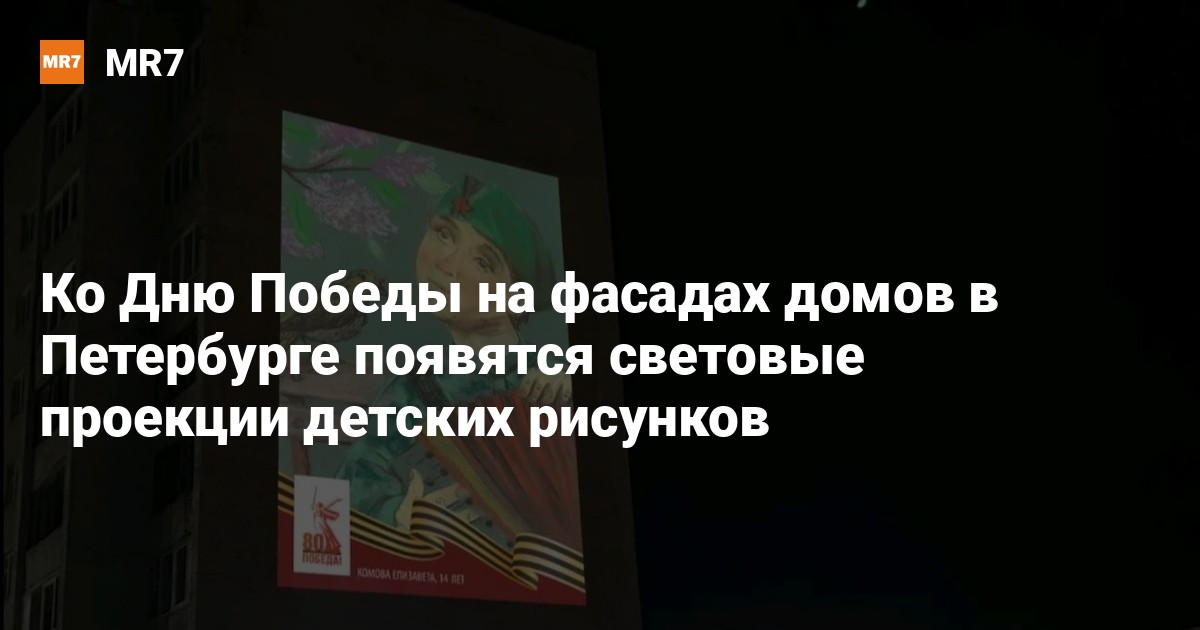 Рисунки школьников — участников конкурса «Весна! Ленинград! Победа!» появятся в виде световых проекций на фасадах нескольких зданий в Петербурге к 80-летию Победы, сообщили в пресс-службе Смольного.