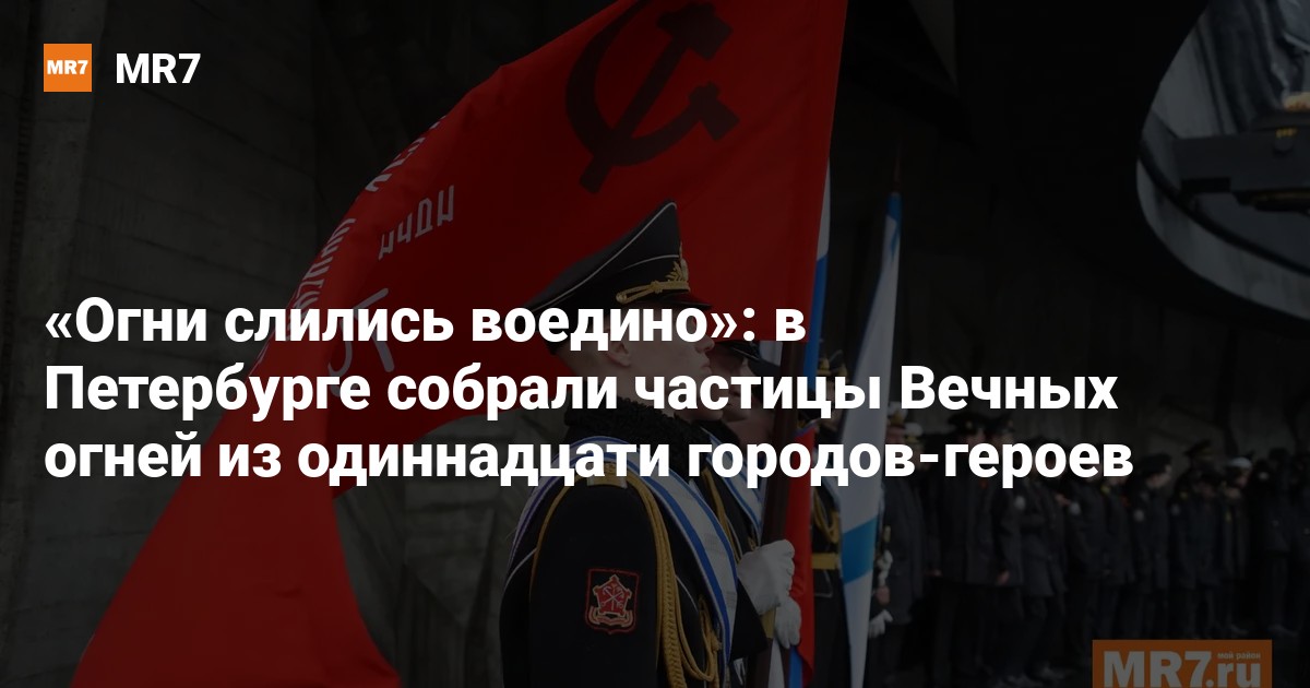 В Петербурге на площади Победы 7 мая завершилась акция «Огонь памяти». Её участники привезли частички Вечных огней из одиннадцати городов-героев России, чтобы собрать из них огонь Победы.