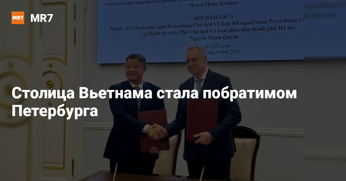 Ханой стал пятым побратимом Петербурга из Вьетнама. Ранее были подписаны соглашения с городами Хошимин и Хайфон, а также провинциями Кханьхоа и Дьенбьен.