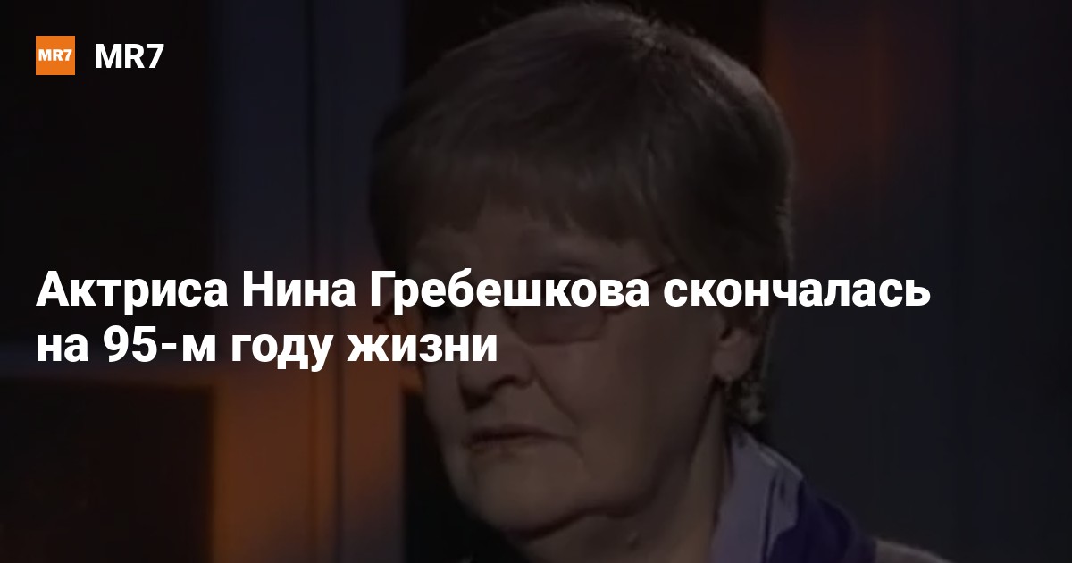 Заслуженная артистка России актриса Нина Гребешкова скончалась 10 мая на 95-м году жизни, сообщил Союз кинематографистов РФ.