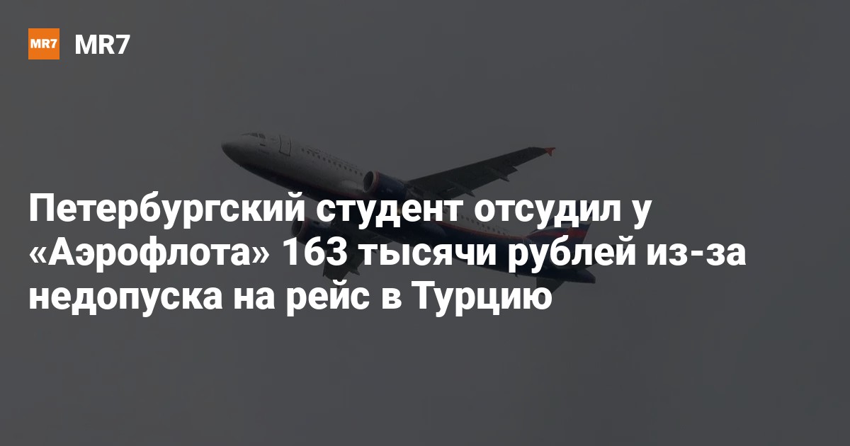 Фрунзенский районный суд Петербурга встал на сторону петербургского студента Роберта Пучкова в споре с ПАО «Аэрофлот» о защите прав потребителей. Авиакомпания не пустила на рейс истца, который летел в Турцию, чтобы сдать экзамен, сообщили в объединённой пресс-службе судов города.
