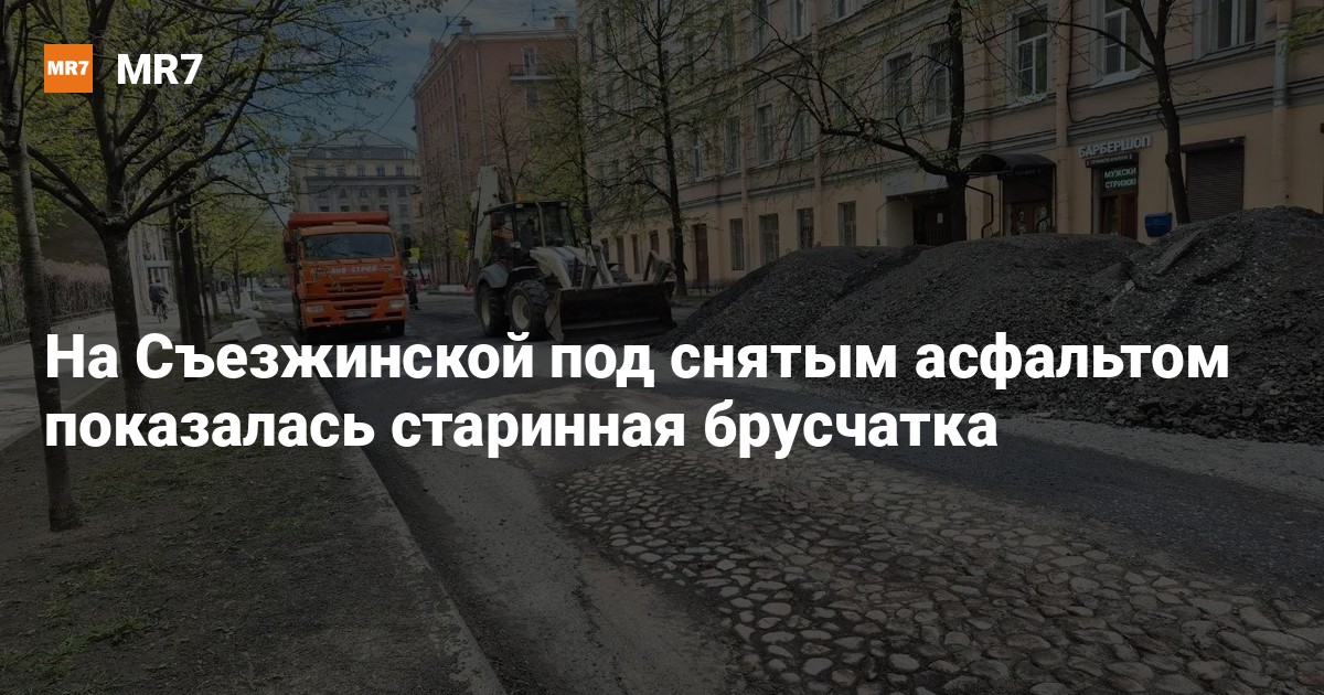 На Съезжинской улице начали перекладывать асфальт. Под старым слоем дорожного покрытия оказалась старинная брусчатка.