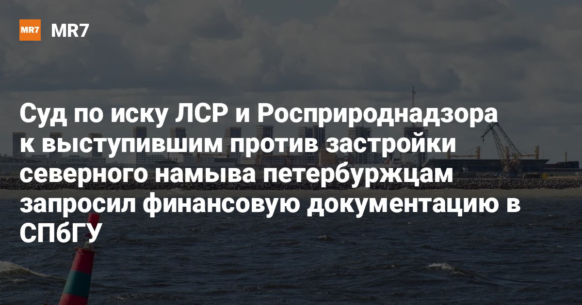 Как сообщили MR7 противники намыва, суд полностью удовлетворил ходатайство ответчиков об истребовании финансово-экономического обоснования из СПбГУ — специалисты университета проводили для ЛСР экспертизу по намыву, как утверждает застройщик, за 5,5 миллиона рублей в рамках иска, поданного ранее жителями и рассматривавшегося в том же суде (и у той же судьи Татьяны Кузовкиной).