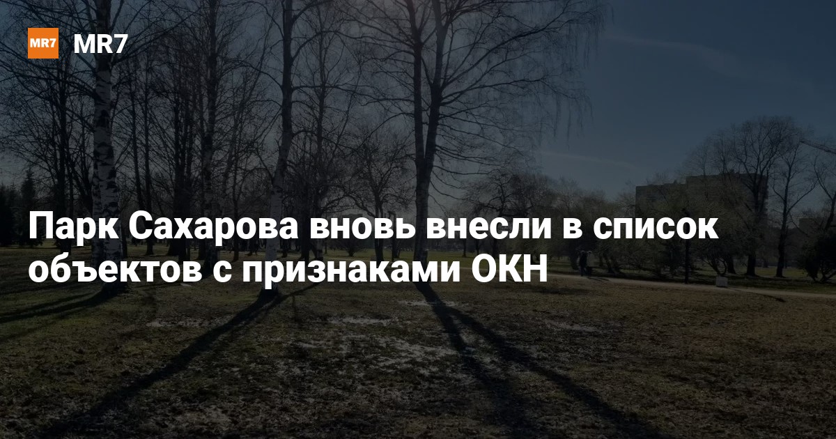 КГИОП вновь внёс парк Академика Сахарова в Калининском районе в список объектов с признаками памятников, следует из данных на сайте комитета от 21 мая. Накануне с соответствующим заявлением в ведомство обратились петербургские активисты.