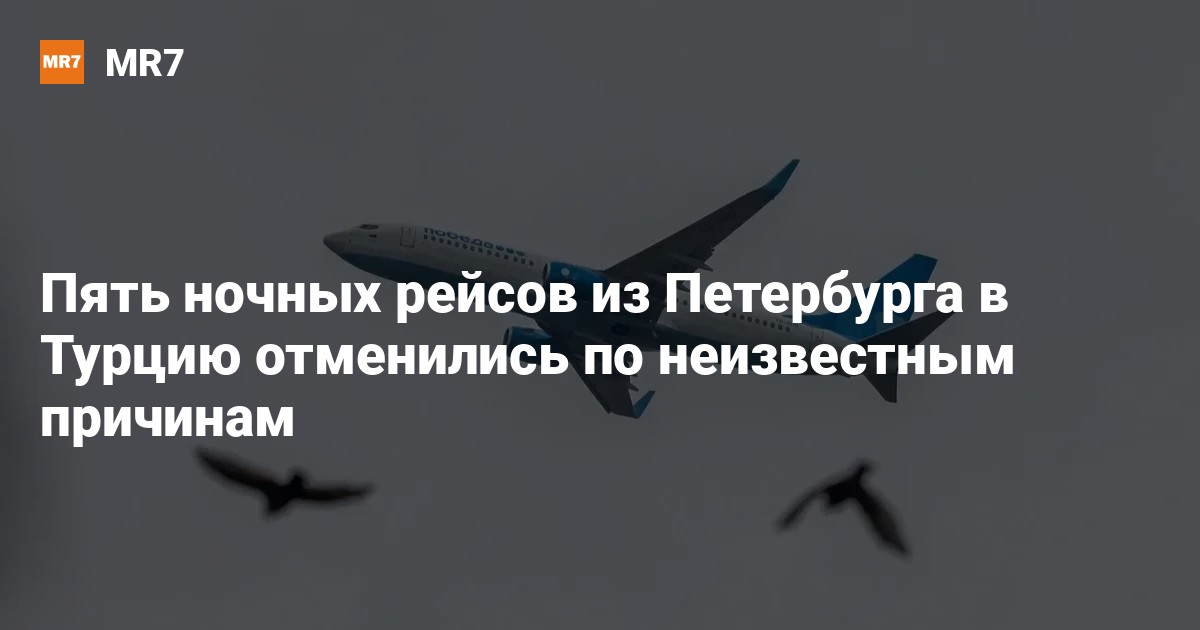 Пять авиарейсов из Петербурга в Турцию, запланированные на ночь 26 мая, отменились по неизвестным причинам.