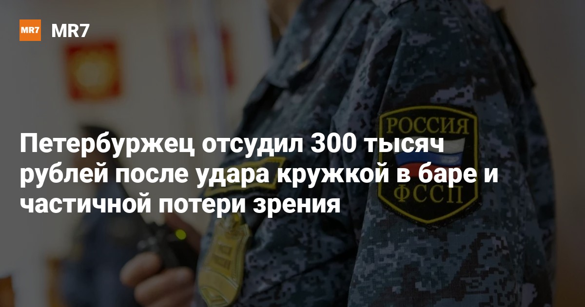 Житель Петербурга получил компенсацию морального вреда 300 тысяч рублей за удар пивной кружкой в баре и частичную потерю зрения. Приставы помогли ему взыскать деньги с 39-летнего мужчины, который и был виновником происшествия, сообщили в пресс-службе ГУФССП по Петербургу.