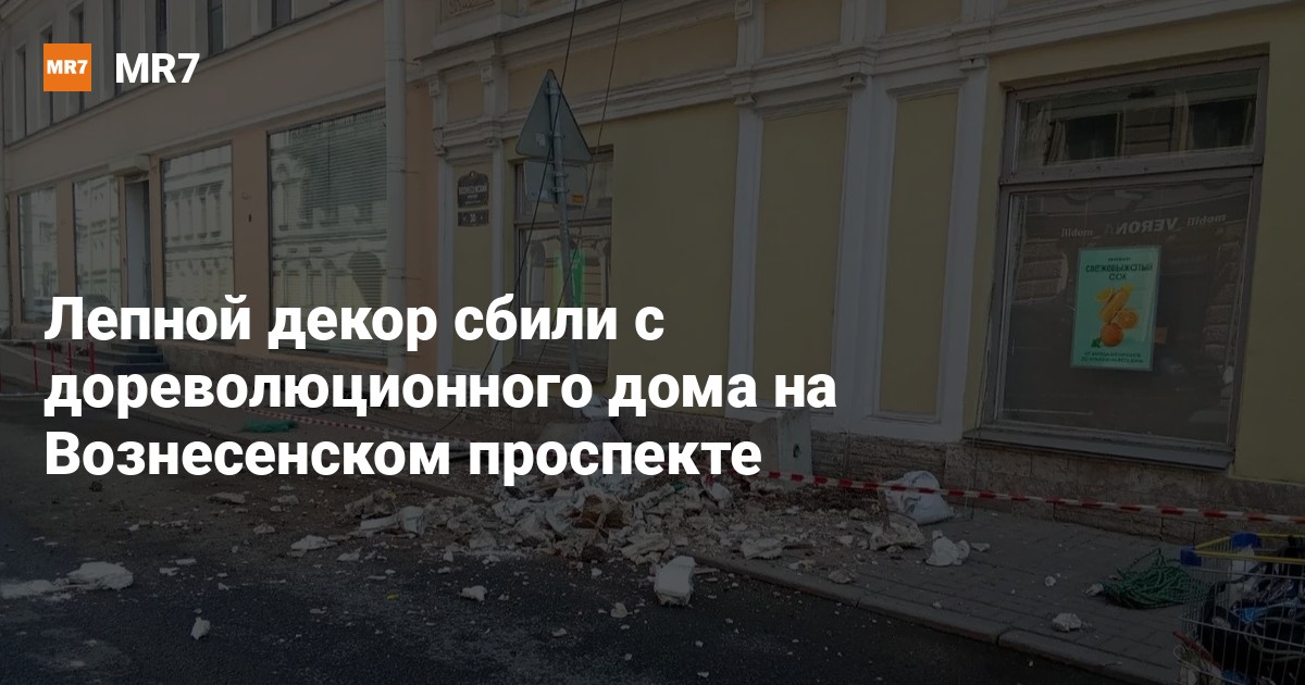 Рабочие сбили лепнину балкона дома 1875 года постройки на углу Вознесенского проспекта и Гражданской улицы, сообщили петербургские активисты в telegram-канале «SOS СПб Снос» 29 мая.
