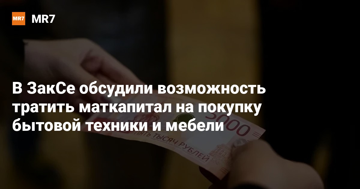 Члены постоянной комиссии по социальной политике и здравоохранению при ЗакСе Петербурга обсудили расширение возможностей использования регионального материнского капитала. Среди инициатив — разрешить тратить выделенные средства на покупку мебели и бытовой техники.