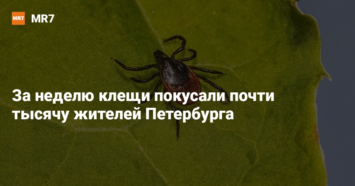 В Петербурге с 22 по 28 мая к медикам из-за укусов клещей обратились 959 человек, из них 139 детей, сообщили в региональном управлении Роспотребнадзора. Напомним, что неделей ранее в городе было зарегистрировано 1 144 подобных случая.