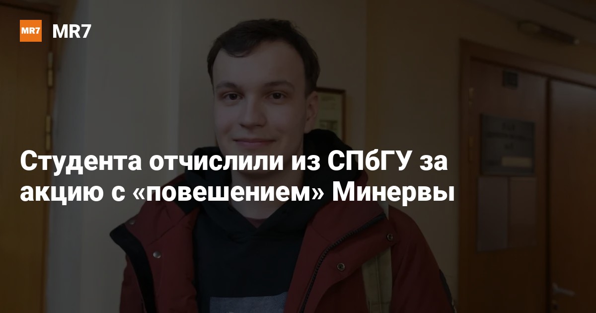 Студента второго курса факультета политологии Санкт-Петербургского государственного университета (СПбГУ) 23-летнего Артёма Пронько отчислили после решения суда о его причастности к мартовской акции с повешенной на памятнике графу Уварову «богиней Минервой». Информацию о своём отчислении Пронько подтвердил MR7.