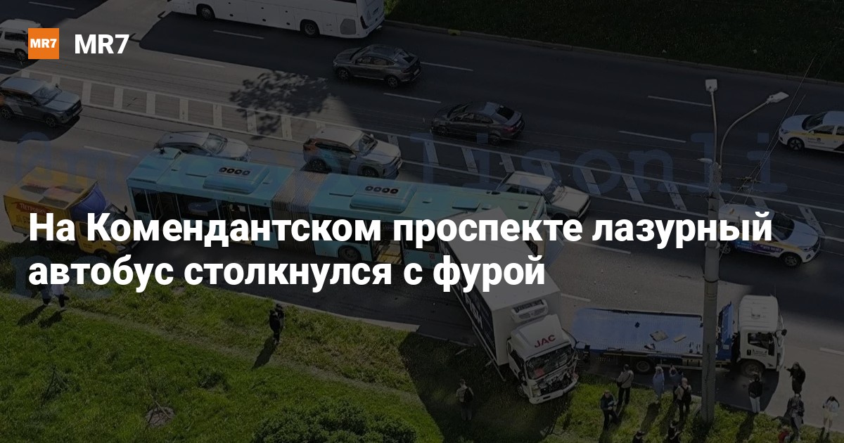 На Комендантском проспекте, 31/1, днем 1 июня столкнулись лазурный автобус и грузовой автомобиль, сообщили очевидцы в telegram-канале «Мегаполис».