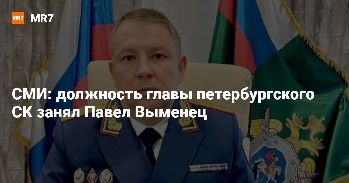 Глава Западного межрегионального следственного управления СК РФ на транспорте (МСУТ) Павел Выменец занял должность председателя ГСУ СК РФ по Петербургу, сообщает «Фонтанка» со ссылкой на указ президента РФ от 3 июня.