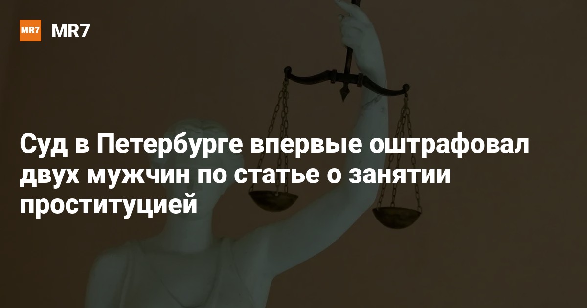 Мировой судья оштрафовал двух мужчин по делам о занятии проституцией (ст. 6.11 КоАП РФ)— каждого обязали выплатить по 2 000 рублей, рассказала глава объединённой пресс-службы судов Петербурга Дарья Лебедева 4 июня.