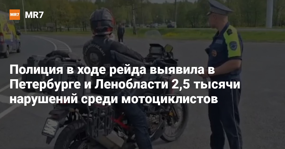 В Петербурге и Ленобласти в ходе рейда по проверке правил вождения мотоциклов полиция за неделю выявила около 2,5 тысячи нарушений, сообщили 5 июня в ГУ МВД по региону.