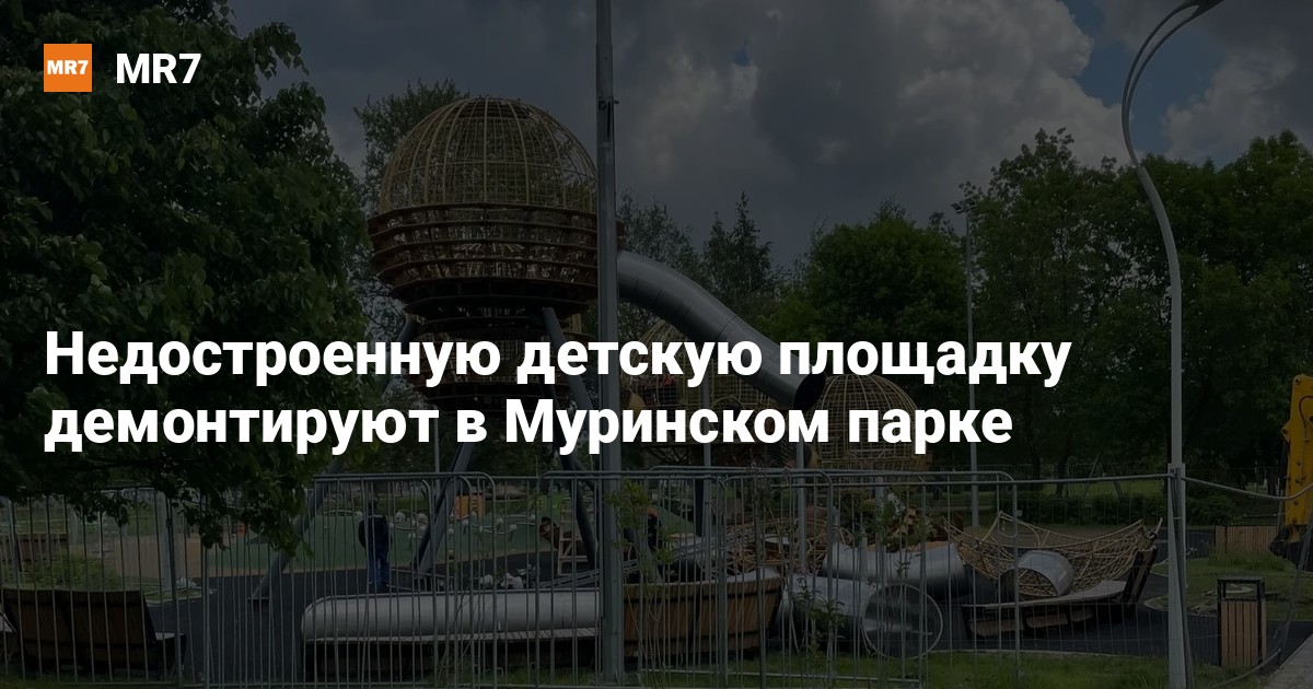 Простоявшую больше года детскую площадку в Муринском парке разбирают рабочие, сообщают жители Калининского района в группе «Спасем Муринский парк от уничтожения» в ВК. В эксплуатацию она так и не была введена.