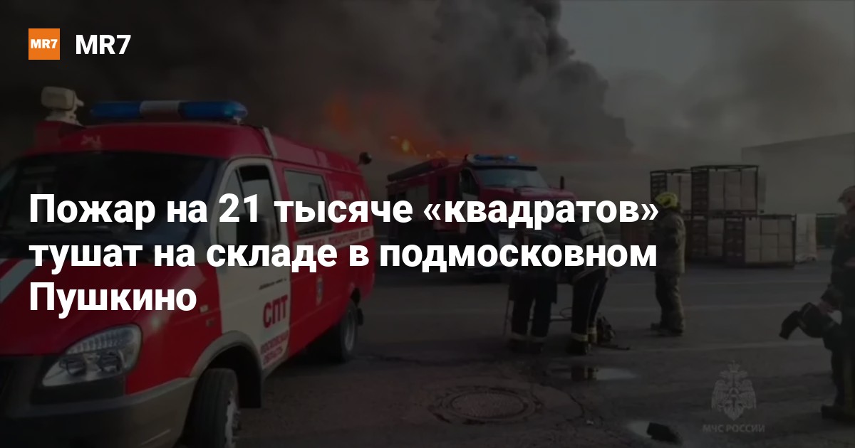 Пожарные тушат возгорание на складе в подмосковном Пушкино. Огонь уже распространился на 21 тысячу квадратных метров и перекинулся на соседнее здание, сообщили в пресс-службе МЧС России.