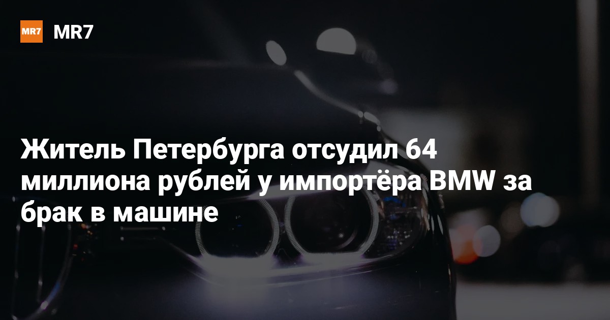 Ленинский районный суд обязал импортёра BMW ООО «БМВ Русланд Трейдинг» вернуть истцу более 64 миллионов рублей убытков, которые он понёс из-за бракованного автомобиля, сообщили в объединённой пресс-службе судов Петербурга.