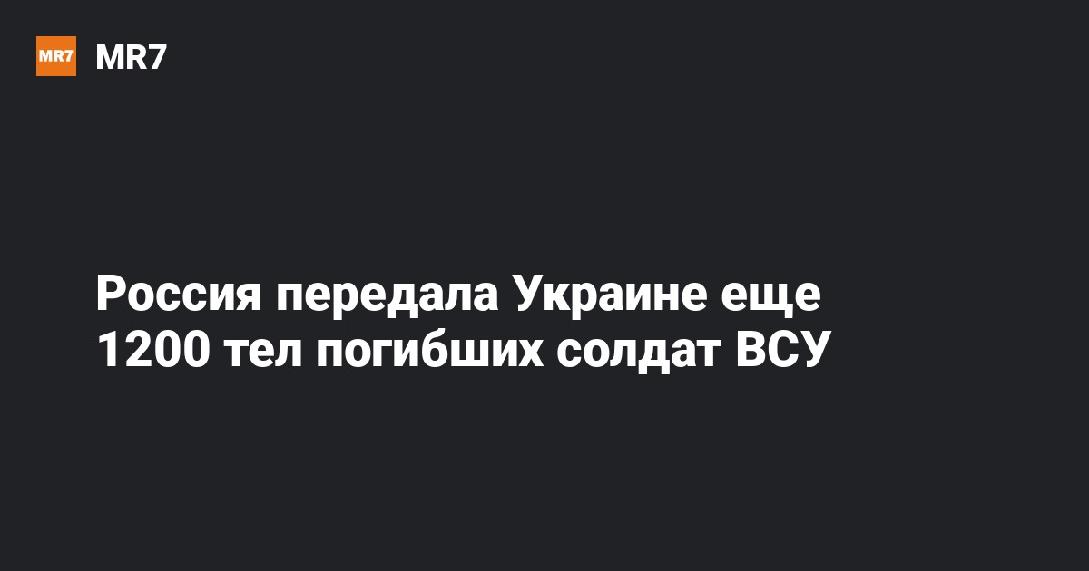 Россия 15 июня передала Украине очередные 1 200 тел погибших военнослужащих ВСУ, сообщает ТАСС со ссылкой на источник в российской переговорной группе.