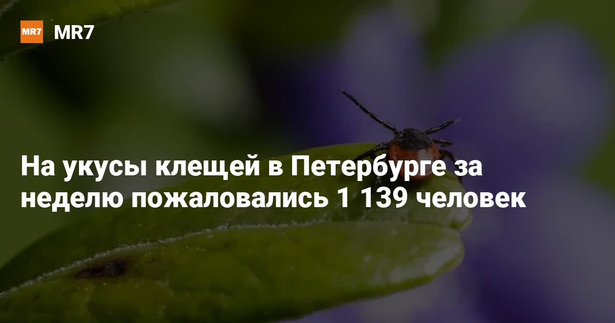 В медучреждения Петербурга за неделю с 19 по 25 июня с жалобами на укусы клещей обратились 1 139 человек, из которых 200 — дети, рассказали в пресс-службе Роспотребнадзора по городу и Ленобласти.
