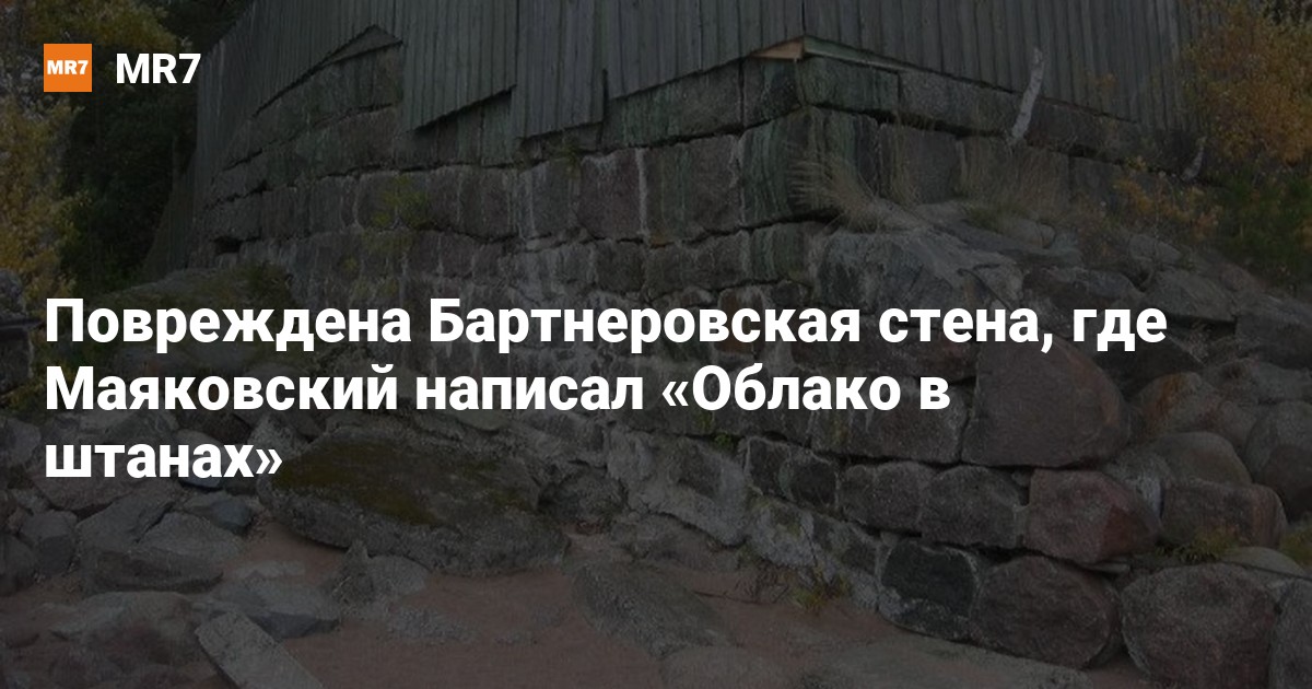 В посёлке Солнечное в Курортном районе Петербурга повреждена Бартнеровская стена вдоль берега Финского залива, где Владимир Маяковский сочинил свою поэму «Облако в штанах». Об этом 27 июня сообщили в группе «Новости Репино» в ВК.