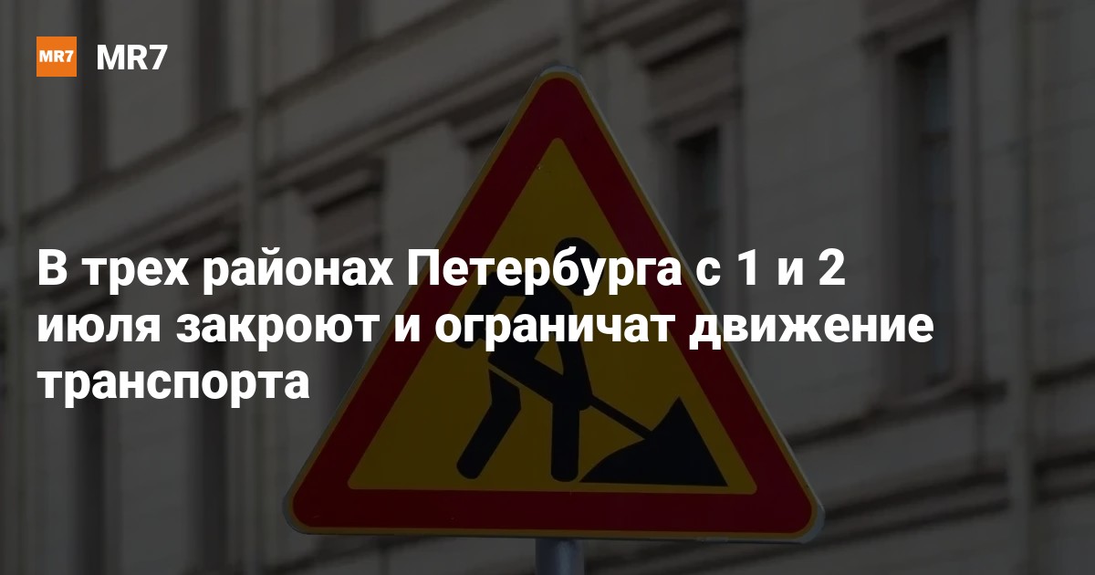 В Петербурге с 1 и 2 июля закроют и ограничат движение транспорта в трех районах города, сообщили 30 июня в ГАТИ.