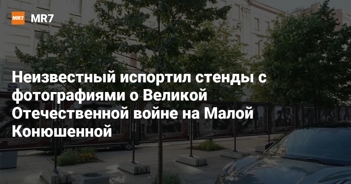 Неизвестный оставил признание в любви черной краской прямо на стендах с фотографиями о Великой Отечественной войне на Малой Конюшенной улице в Петербурге, сообщает корреспондент MR7.