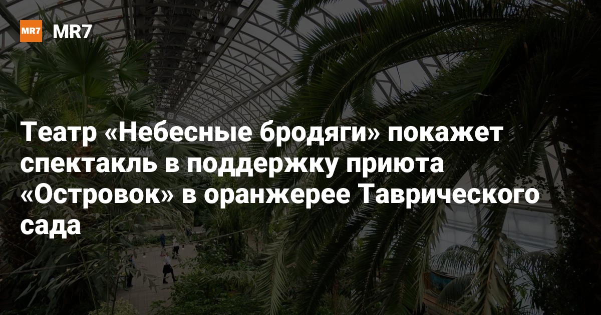 Театр «Небесные бродяги» покажет спектакль «Унесённые призраками» по одноименному мультфильму Хаяо Миядзаки в оранжерее Таврического сада 20 июля. Часть средств от продажи билетов пойдёт приюту для животных «Островок», рассказали «Небесные бродяги» в соцсетях.