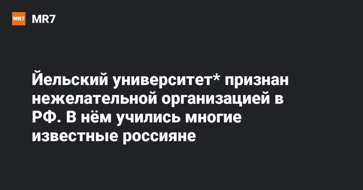 Генпрокуратура 8 июля признала нежелательной на территории России деятельность иностранной организации Yale University* (США) — Йельского университета*.