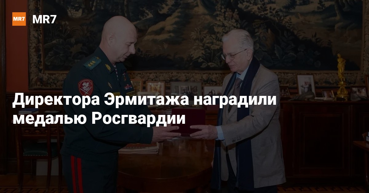 Росгвардия в Петербурге наградила многолетнего директора Государственного Эрмитажа Михаила Пиотровского медалью «Генерал армии Яковлев», о чем 11 июля сообщает управление силового ведомства по Северо-Западу. Этой награды традиционно удостаиваются люди, оказывающие Росгвардии содействие.
