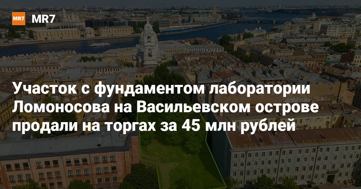 Участок с фундаментами химической лаборатории Михаила Ломоносова и «Бонова дома», в котором в XVIII веке жил известный российский учёный, продали на торгах за 45,089 миллиона рублей. Результаты подведения итогов аукциона появились 11 июля на сайте ГИС «Торги».