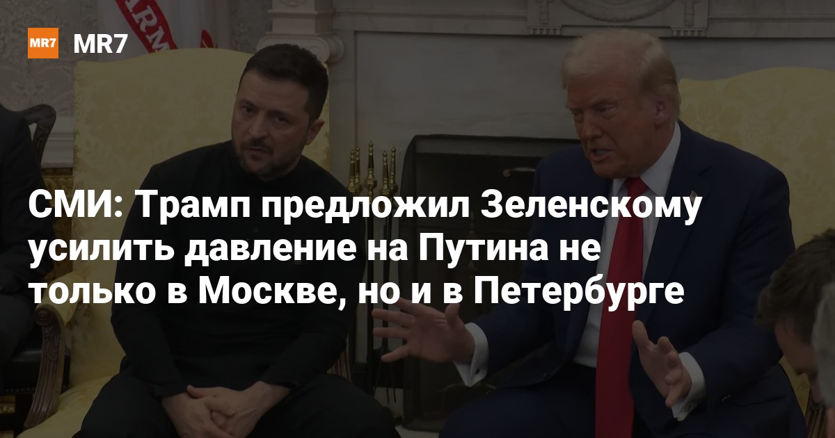 Президент США Дональд Трамп в телефонном разговоре с главой Украины Владимиром Зеленским предложил ему «усилить давление на президента России Владимира Путина» не только в Москве, но и в Петербурге, пишет The Washington Post.