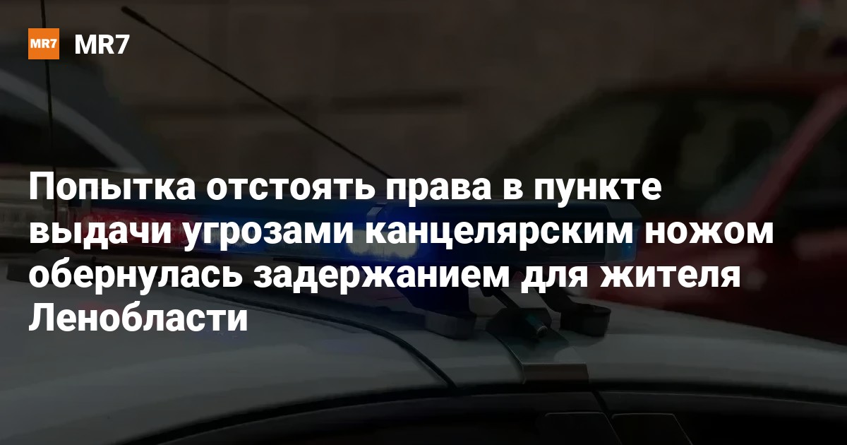 Жителя Новосаратовки (Всеволожский район Ленобласти) задержали после заявления сотрудницы пункта выдачи заказов об угрозах канцелярским ножом, рассказали в ГУ МВД РФ по Петербургу и 47-му региону 19 июля.