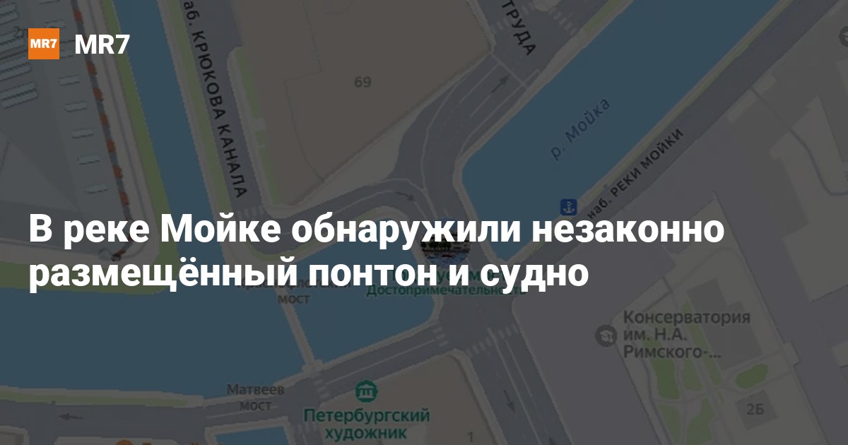 В ходе совместной проверки прокуратуры и комитета по природопользованию выяснилось, что общество с ограниченной ответственностью незаконно разместило понтон и пришвартованное судно в реке Мойке у Большой Морской, 67, без договора водопользования.