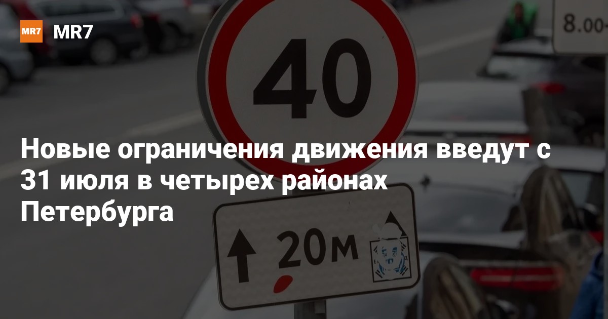 В четырех районах Петербурга с 31 июля вводятся ограничения для транспорта. Об этом во вторник сообщает Государственная административно-техническая инспекция города.