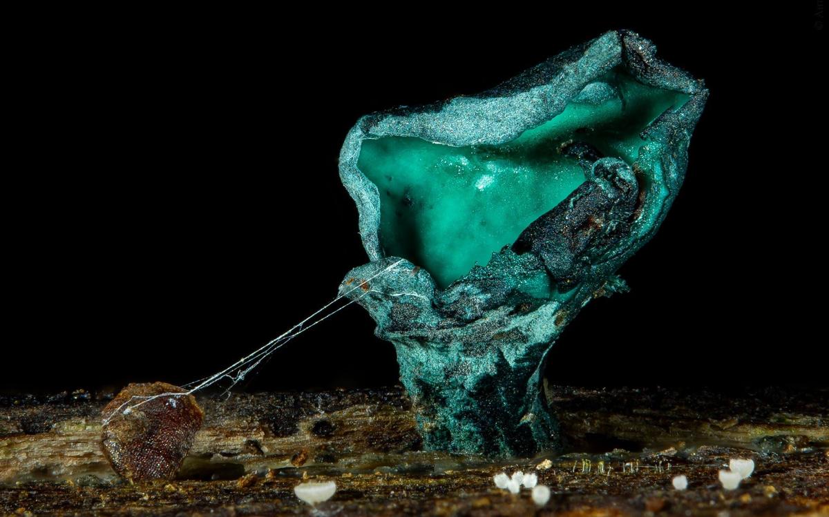 Хлороцибория сине-зеленоватая (Chlorociboria aeruginascens). Удельный парк. 21.08.2024. Фото: Антон Кубышкин