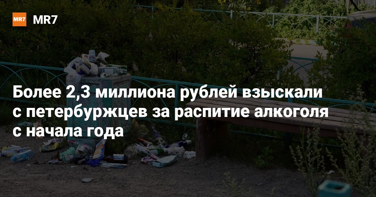 За распитие алкоголя в общественных местах с начала года с петербуржцев взыскали более 2,3 миллиона рублей, рассказали в пресс-службе управления ФССП по Петербургу 4 августа. Больше всего пьяными на улицах появляются жители Приморского, Кировского и Фрунзенского районов города.