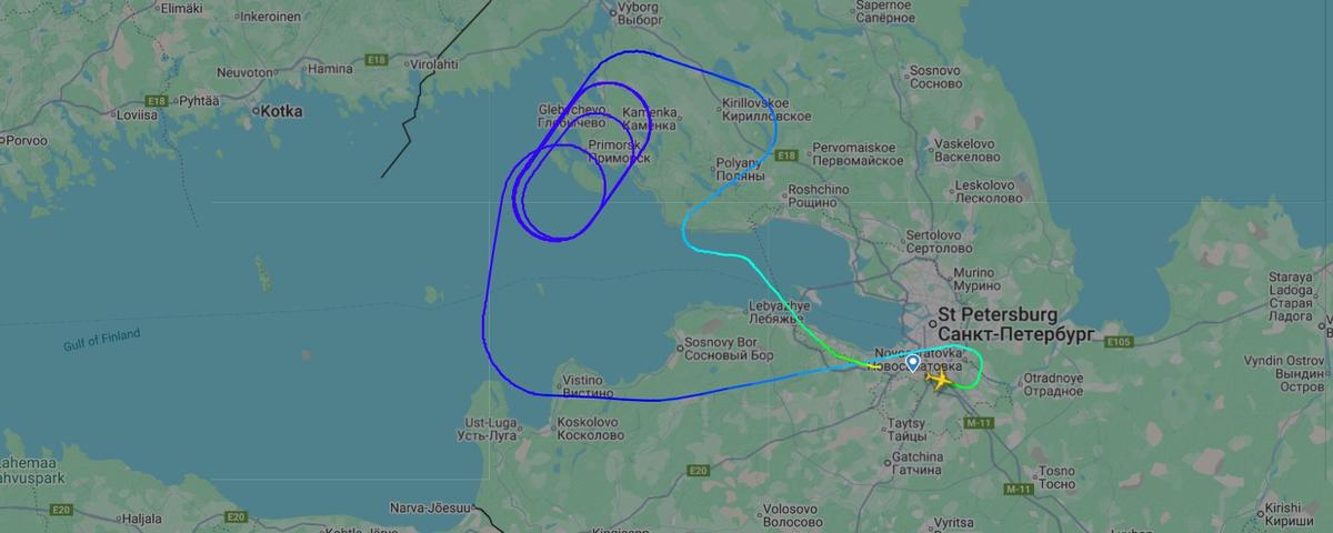 Речь идёт о рейсах «Победы», запланированных на вылет из Пулково в 16:25 и на вылет из Храброво в 17:45 (по московскому времени). Первый в результате покружил над Приморском и отправился обратно, а второй долетел до Эстонии, но был отправлен в Храброво.