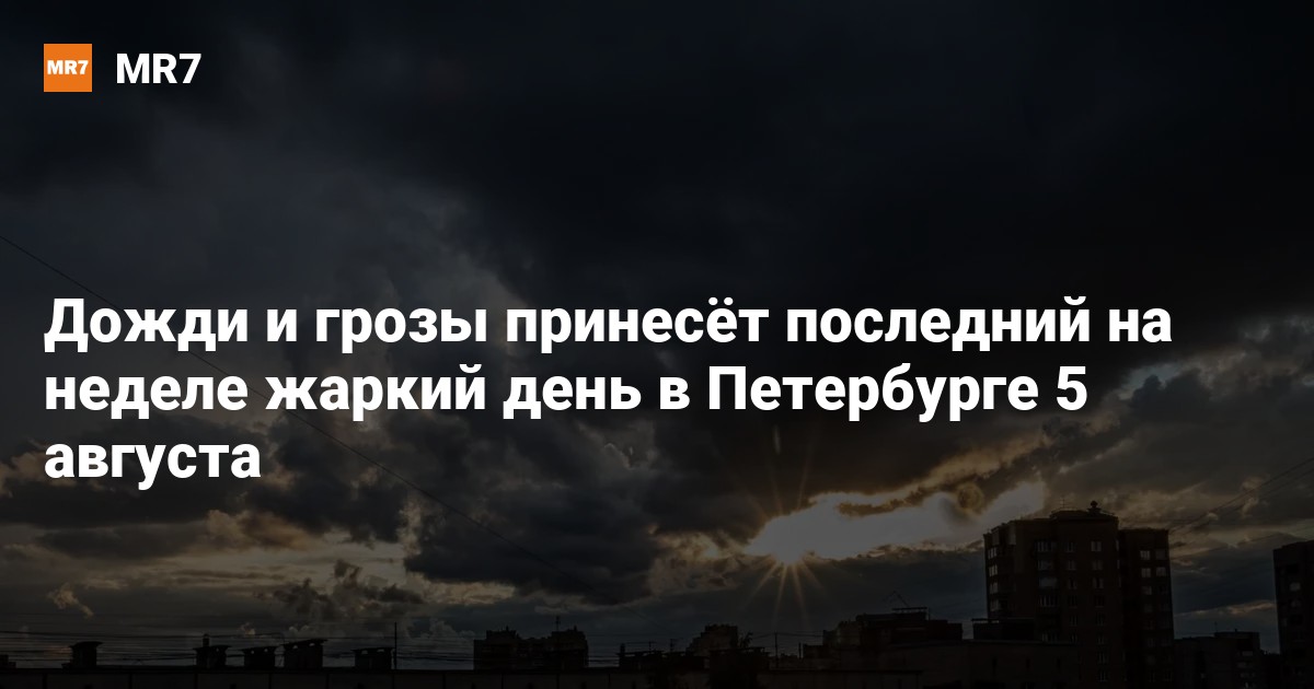 Последний жаркий день перед чередой умеренно тёплых и дождливых ожидается в Петербурге сегодня, 5 августа, рассказал ведущий специалист центра «Фобос» Михаил Леус.