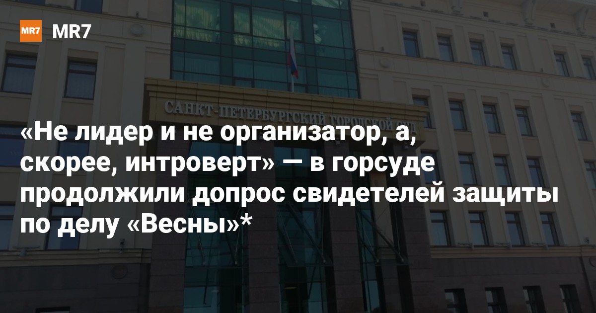 О друзьях, сыне, пасынке и о каких-то неизвестных ребятах сегодня, 6 августа, рассказывали в горсуде Петербурга свидетели защиты по делу молодёжно-демократического движения «Весна»*.