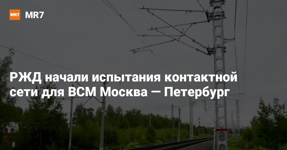 РЖД приступили к испытаниям опытного участка контактной сети для первого этапа высокоскоростной магистрали (ВСМ) Москва —Петербург. Испытания проходят на Экспериментальном кольце ВНИИЖТ в Щербинке. Об этом 7 августа сообщили в официальном новостном канале РЖД.