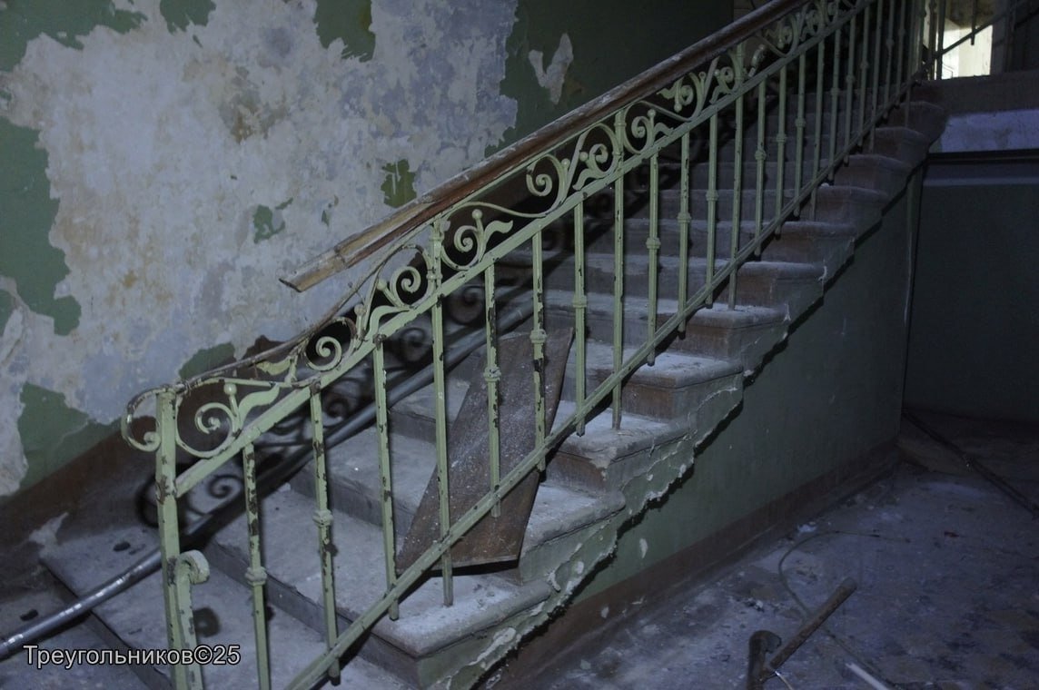 — В целом состояние здания не плохое. Парадные лестницы с перилами целые. Порадовало обилие исторических инженерных и декоративных элементов. Например, много где сохранилась интерьерная лепнина, кованые перила, — поделился с MR7 впечатлениями от интерьеров здания краевед Александр Треугольников.