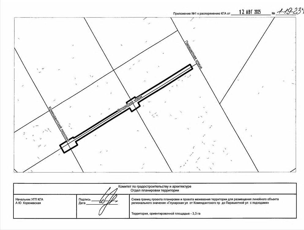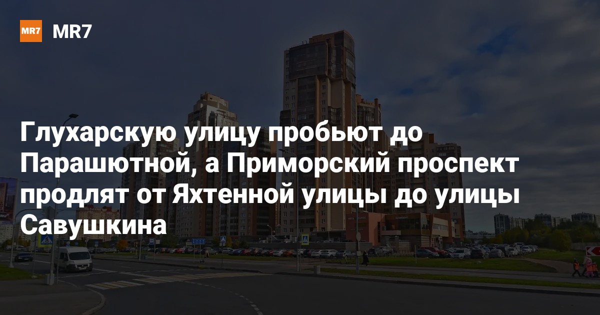 Речь идёт об строительстве участка Глухарской улицы, который должен будет соединить Комендантский проспект, проспект Королёва и Парашютную улицу, а также о строительстве участка Приморского проспекта от Яхтенной улицы до улицы Савушкина.