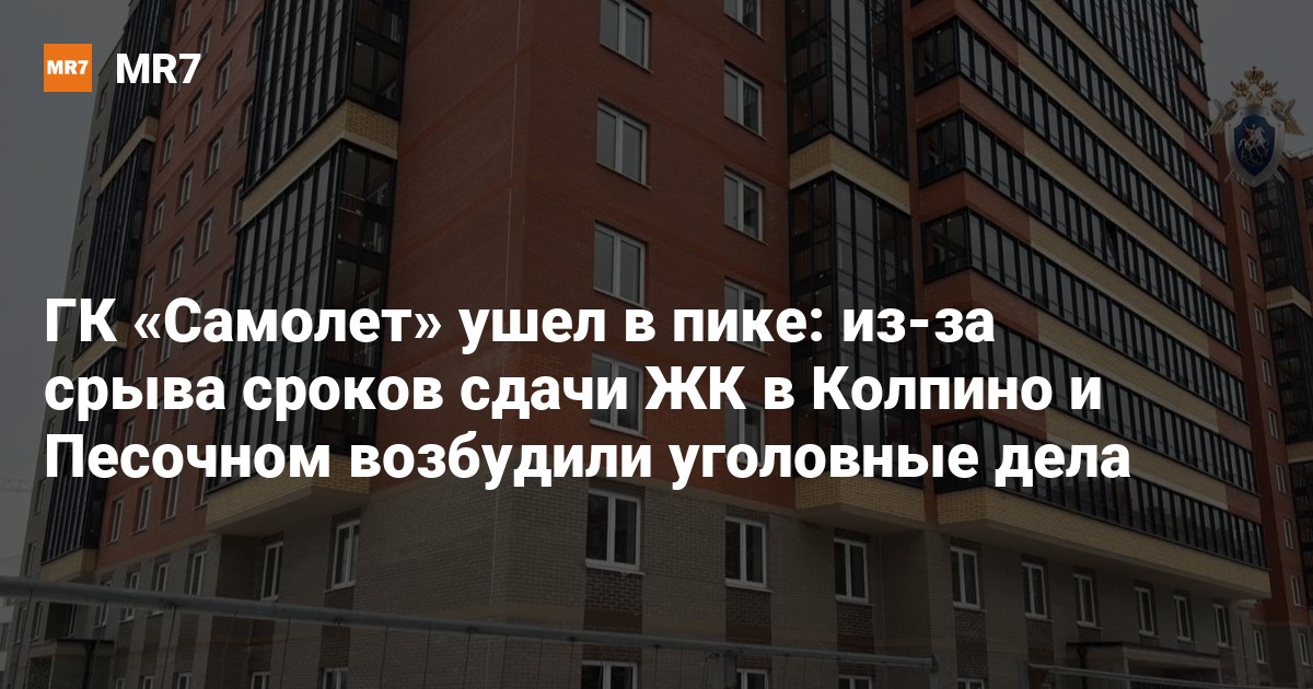 В Колпино фигурантами уголовного преследования стали руководители компании, строящей ЖК «Новое Колпино». Согласно информации из открытых источников, речь в данном случае идет о строительной группе «Самолет». В поселке Песочный вовремя не сдали в эксплуатацию ЖК «Курортный Квартал», к которому тоже имеет прямое отношение ГК «Самолет».