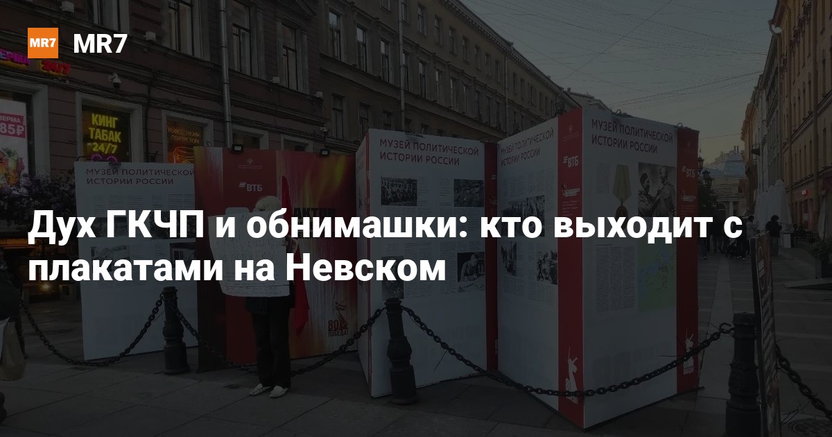 Так, на угол Невского проспекта и Малой Садовой улицы около Елисеевского магазина накануне вечером вышла с плакатом пенсионерка. На плакате была благодарность ГКЧП за попытку свержения Михаила Горбачева в августе 1991 года «с целью предотвратить развал СССР».
