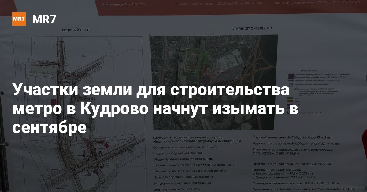 Правительство Ленинградской области анонсировало изъятие земельных участков для строительства вестибюля будущей станции метро «Кудрово». Этот процесс стартует с сентября, о чем 27 августа написал в своем telegram-канале губернатор Александр Дрозденко, участвовавший в заседании Координационного совета по развитию транспортной системы агломерации.
